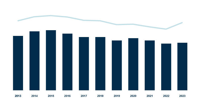 1,274,577 | 1,362,012 | 1,383,848 | 1,444,907 | 1,464,533 | 1,590,735 | 1,376,767 | 1,709,572 | 2,126,127 | 2,021,128 | 1,748,351 |